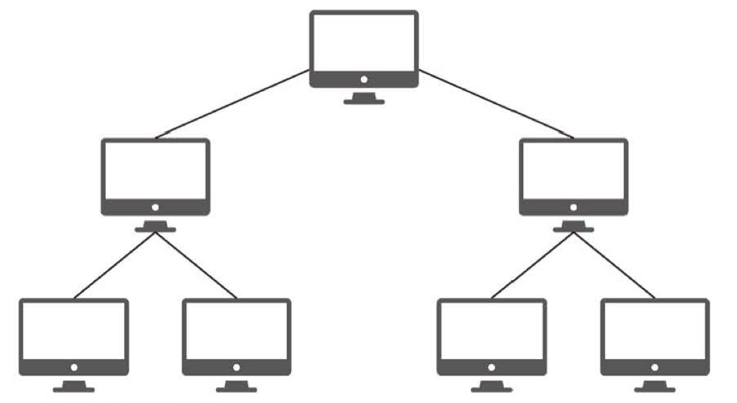 트리 형태(= 계층형)로 배치한 네트워크 구성 방식이다.