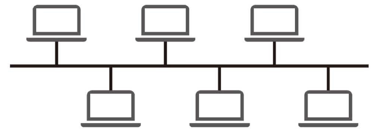 중앙 통신 회선 하나에 여러 개의 노드가 연결되어 공유하는 네트워크 구성 방식이다.