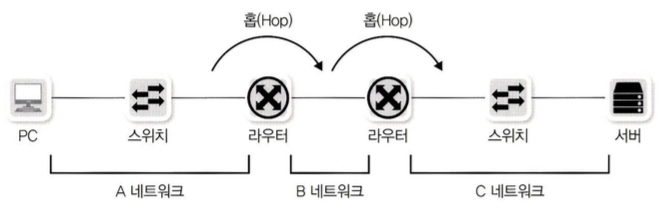 hop by hop은 통신망에서 각 패킷이 여러개의 라우터를 건너가는 모습을 비유하여 표현한 것이다.