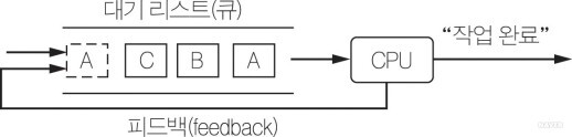 각 프로세스에 동일한 할당 시간을 주고 그 시간 안에 끝나지 않으면 다시 준비 큐의 뒤로 가는 알고리즘 이다.