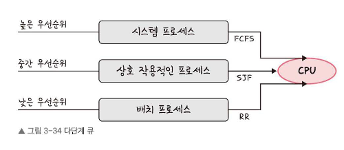 큐마다 라운드 로빈이나 FCFS 등 다른 스케줄링 알고리즘을 적용한다.